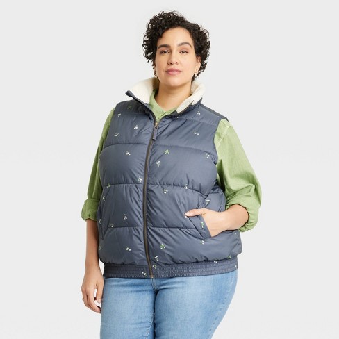 Women S Plus Size Puffer Vest Universal Thread Blue Floral 3x Target